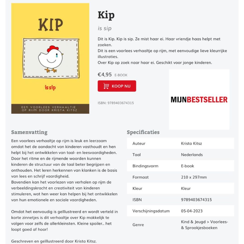 Een voorlees verhaaltje op rijm is leuk en leerzaam omdat het de aandacht van kinderen vasthoudt en hen helpt bij het ontwikkelen van taal- en leesvaardigheden. Door het ritme en de rijmende woorden kunnen kinderen de structuur van de taal beter begrijpen en onthouden. Het leren herkennen van klanken is de basis van lees en schrijf vaardigheid. Bovendien kan het voorlezen van verhalen op rijm de verbeeldingskracht en creativiteit van kinderen stimuleren, wat hen weer kan helpen bij het ontwikkelen van hun emotionele en sociale vaardigheden. Omdat het eenvoudig is geïllustreerd en wordt verteld in korte zinnetjes is dit verhaaltje over Kip makkelijk te volgen voor zelfs de allerkleinsten. Geschreven en geïllustreerd door Krista Kitsz.
