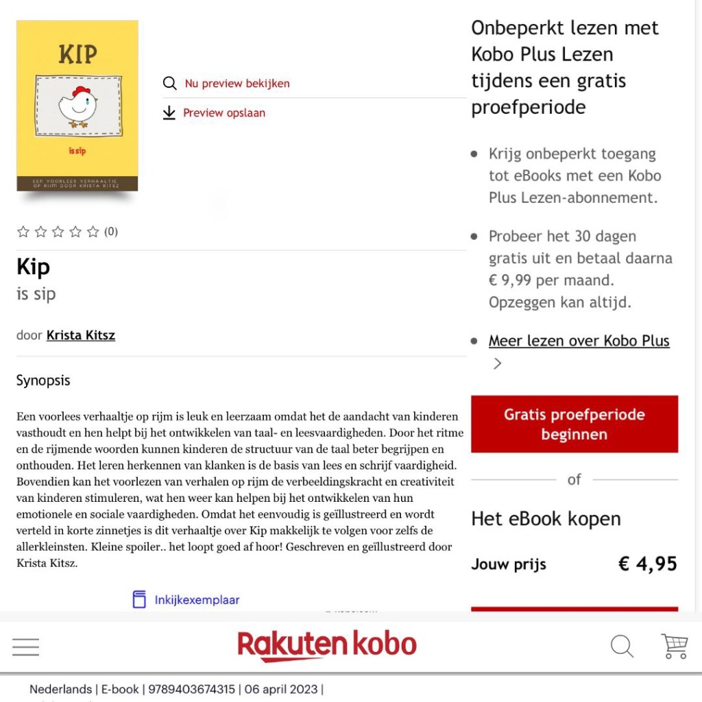 Verder lezen? Dat kan! Mijn voorlees verhaaltje Kip is nu verkrijgbaar als e-book bij alle grote bekende boekhandels! Klik op de afbeelding om naar de webwinkel naar keuze te gaan en lees samen lekker verder!