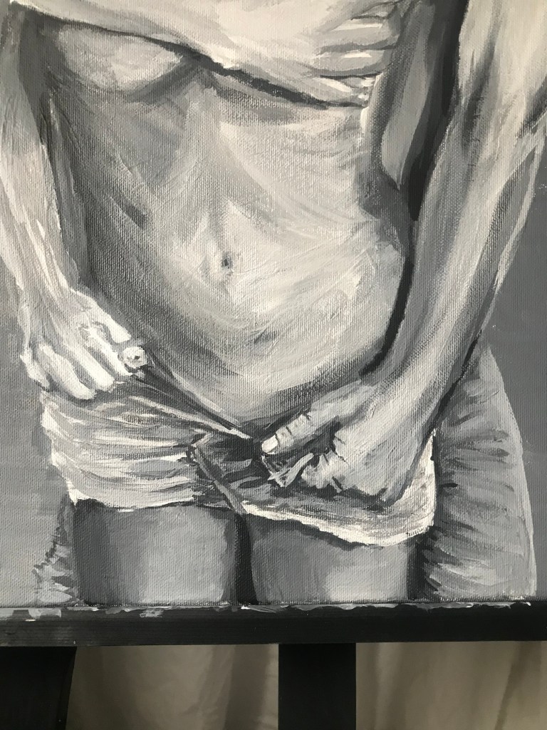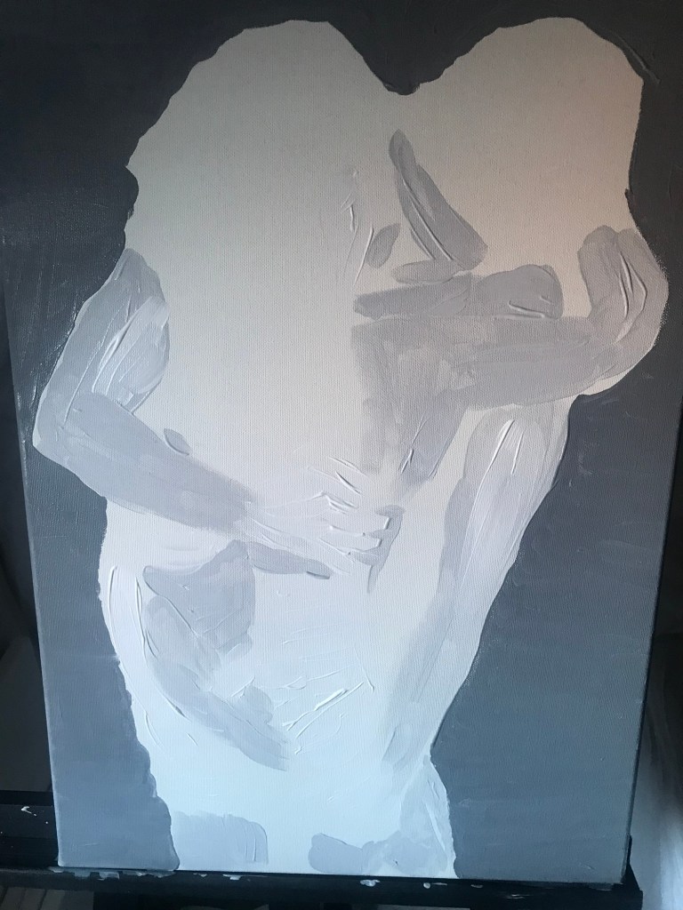 I was given the choice of 2 poems and chose this one; “Take me, hard, as I am.” What I translated into the painting you see here.