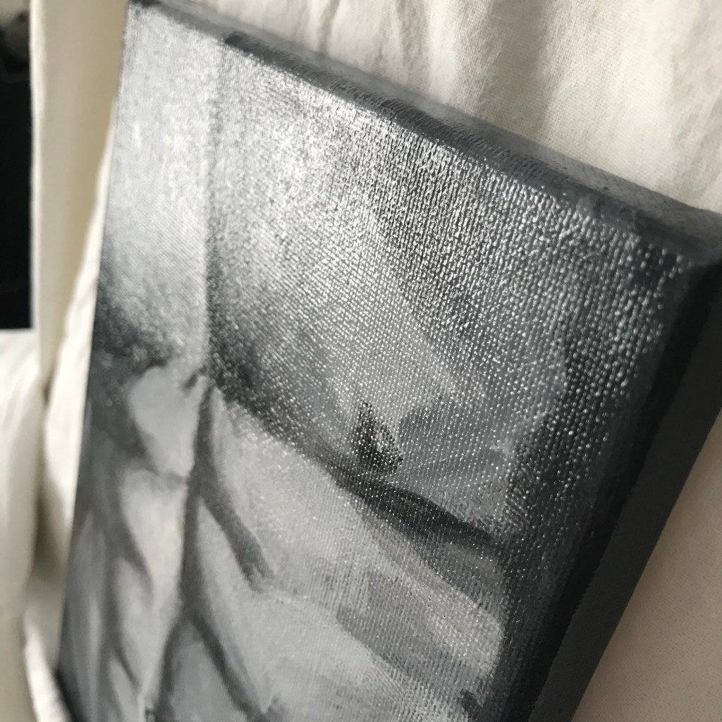 De penseel streken zijn duidelijk zichtbaar en door de vele tinten grijs die ik in dit schilderij heb verwerkt is de diepte bijna voelbaar geworden.