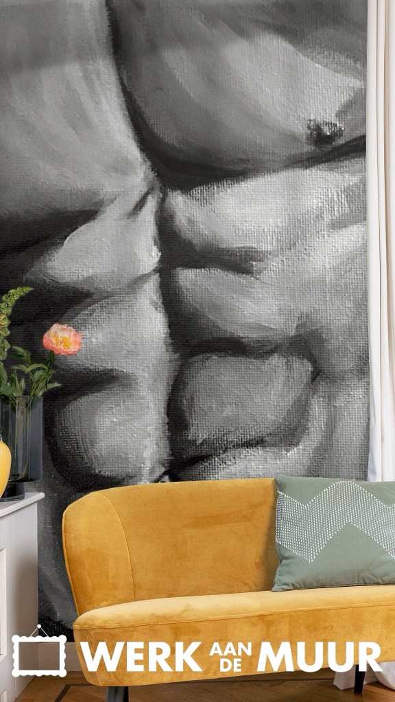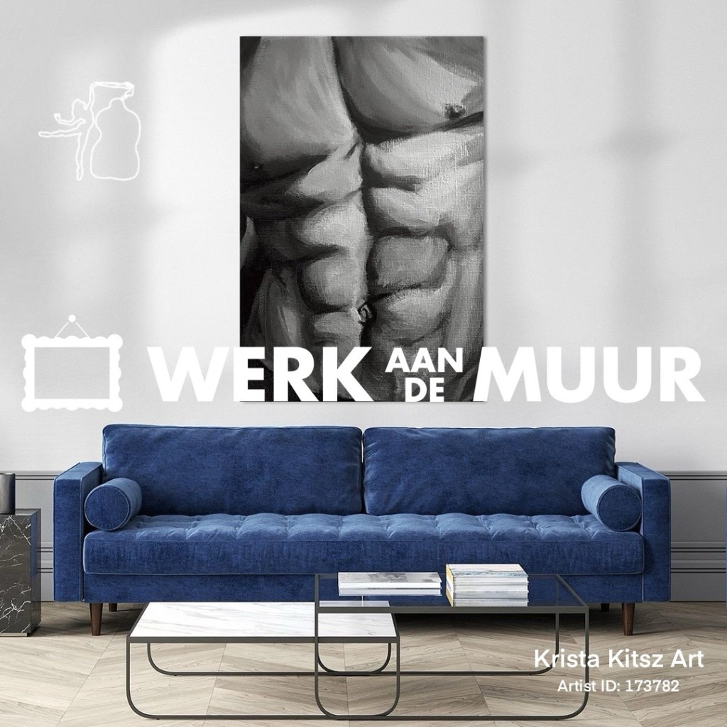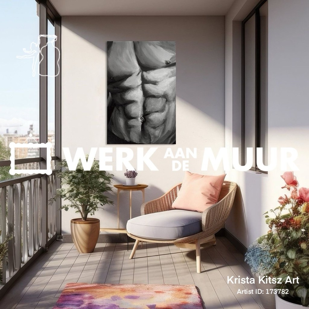 Koop dit schilderij Mannelijke Torso grijstinten schilderij Krista Kitsz Art als reproductie op canvas, aluminium dibond, (ingelijste) fotoprint, behang en ArtFrame, op maat geprint in Fine-Art kwaliteit.