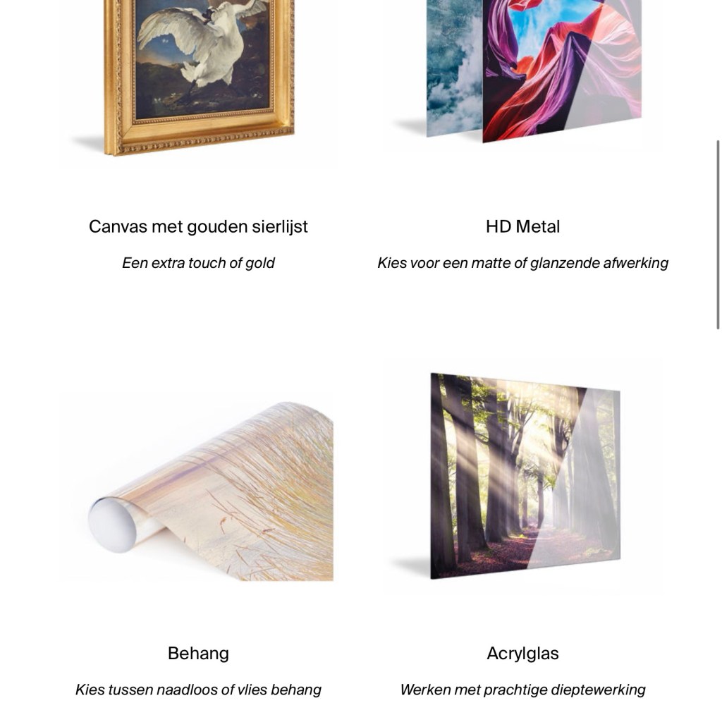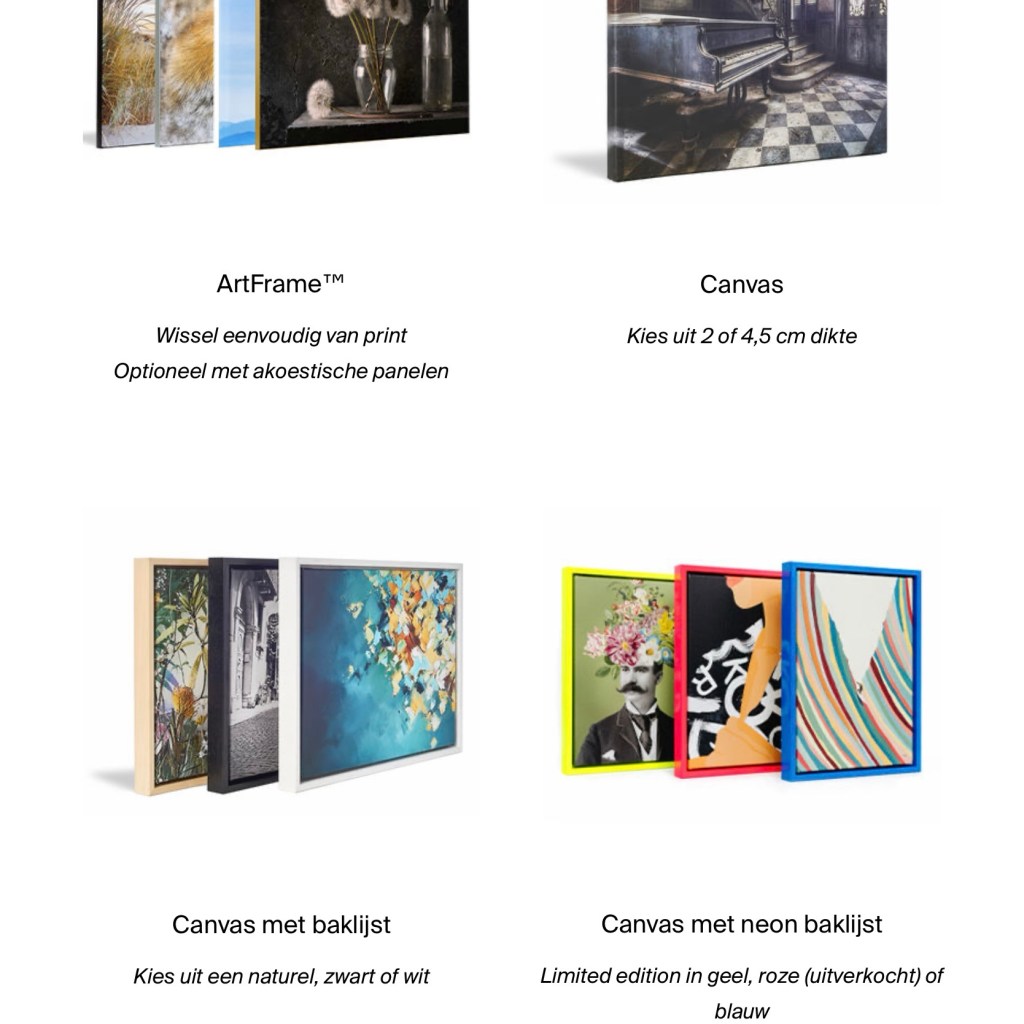 Kies bijvoorbeeld voor een fine art print in een Art Frame wanneer je graag eens wisselt van print , en daarbij de akoestiek in huis wilt verbeteren. De ArtFrame heeft geluidsabsorberende panelen en is daar dus uitstekend geschikt voor.