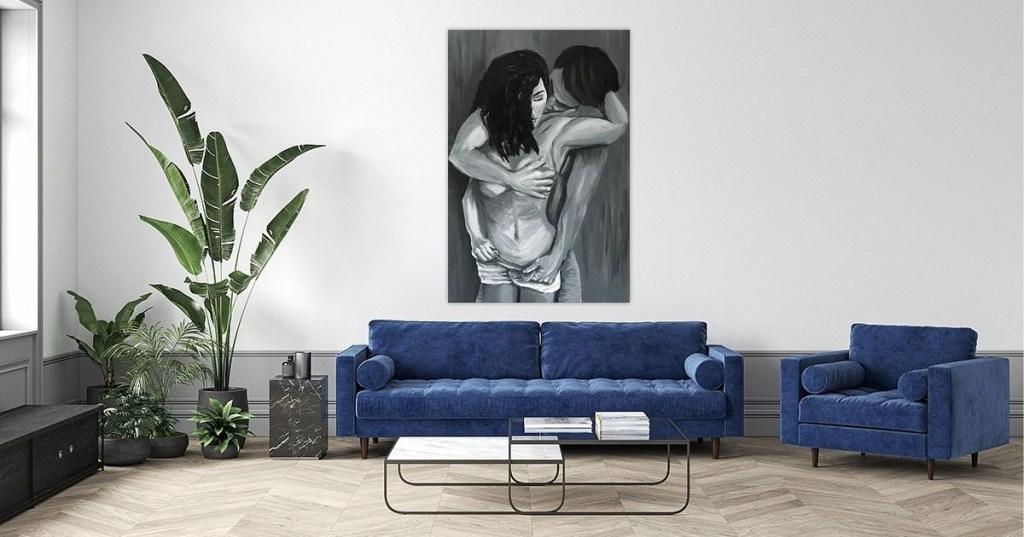 Het is een schilderij vol passie wat in een gedurfde volwassen interieur zeker tot haar recht komt.