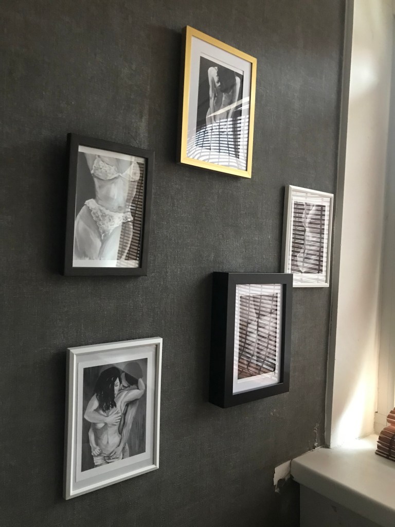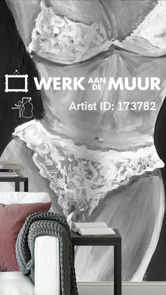 De serie die ik in deze stijl maak heet shades of grays. Figuratieve kunst geschilderd in grijstinten op katoenen doek of hout. De belichaming van het vrouwelijke en mannelijke figuur en ook de liefde.