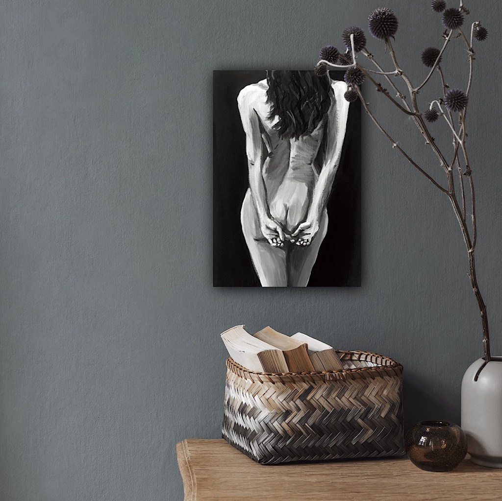 Koop dit schilderij Vrouwelijk naakt rugzijde Krista Kitsz Art als reproductie op canvas, aluminium dibond, (ingelijste) fotoprint, behang en ArtFrame, op maat geprint in Fine-Art kwaliteit.